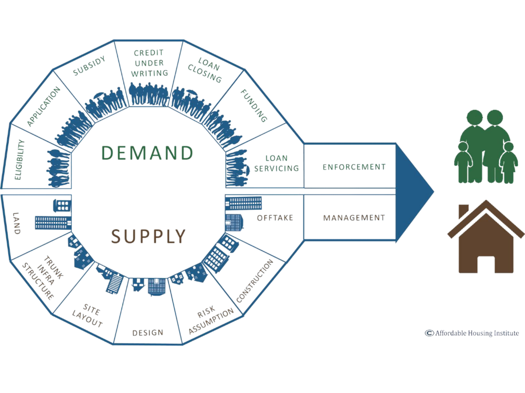 Our goal is to gain a holistic, yet granular, understanding of a country or city’s housing ecosystem and the ways in which that ecosystem is enabling or disabling the production of affordable housing. We then use that understanding to map out the overall housing development processes, identify systemic gaps or blockages, identify and work with key stakeholders in both the public and private sectors, uncover root causes, and easily compare across countries and housing environments.
